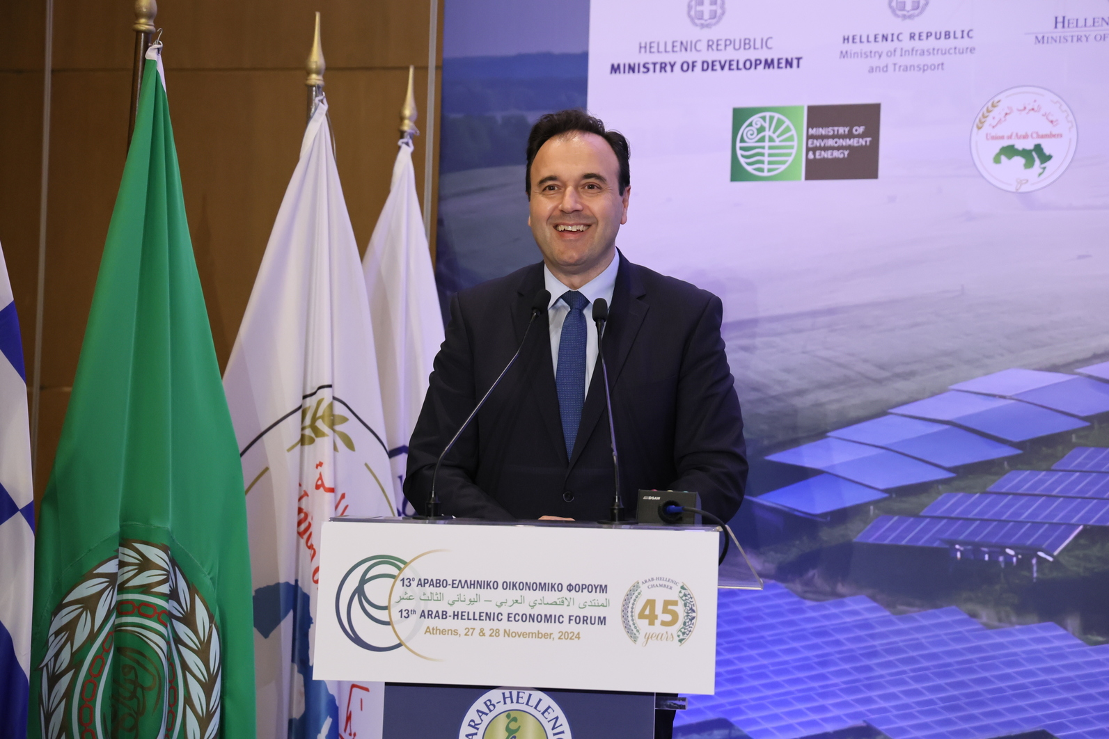 The 13th Arab-Hellenic Economic Forum wrapped up its works on 28th November after two days of intensive discussions and thoughtful deliberations on energy, construction, and their subsectors. 185 Arab and 137 Greek participants gathered at the Athenaeum Intercontinental Hotel of Athens to discuss the challenges and opportunities for closer Arab-Greek business relations in the sectors and fields the Forum covered.