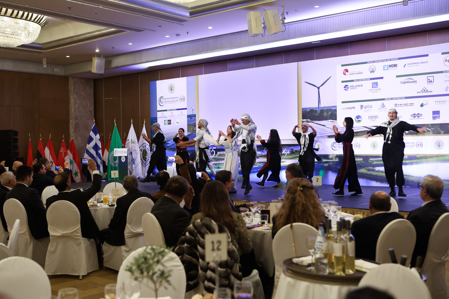 The 13th Forum’s works were concluded with a Gala Dinner on the evening of November 28th, which opened with the keynote address by the Secretary General for Trade, Sotirios Anagnostopoulos, who represented the Greek Prime Minister, Kyriakos Mitsotakis. The Dinner was a celebration of the 45th anniversary of the establishment of the Arab-Hellenic Chamber and included a presentation of folkloric dances and Arabic culinary experiences. It was also an occasion to pay tribute to the founders and pioneers of an initiative that prompted an exciting journey that has led to the Chamber of today.