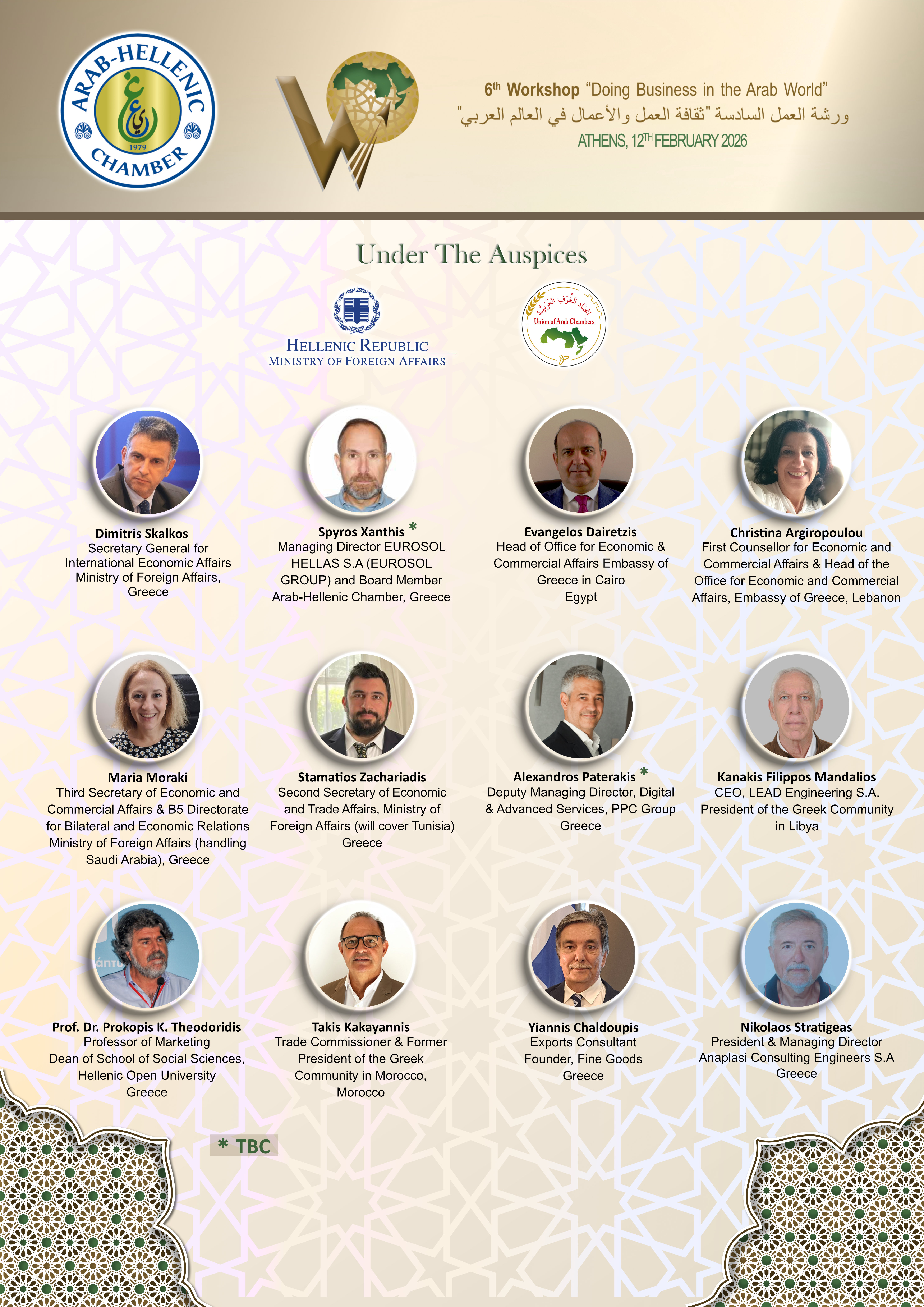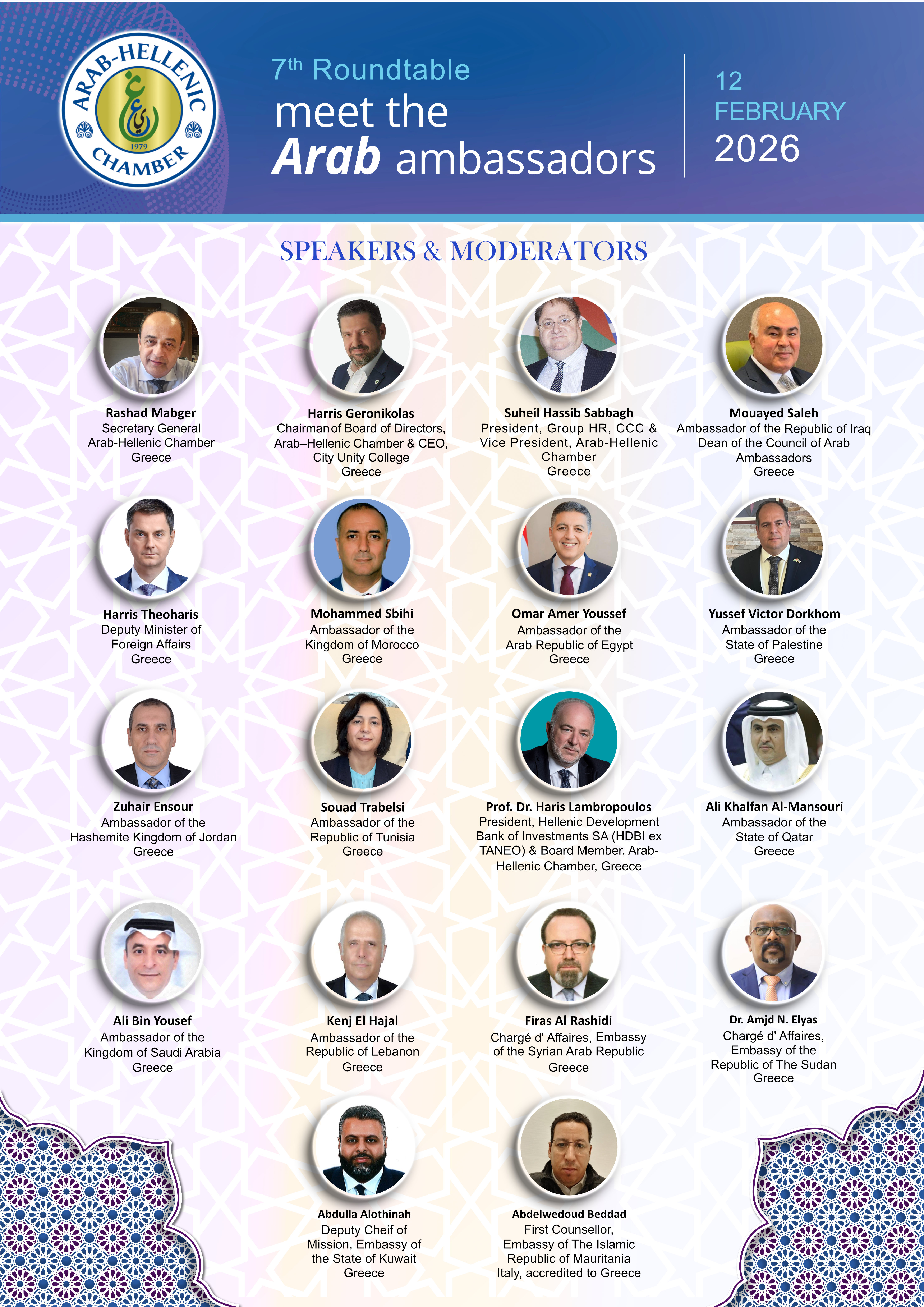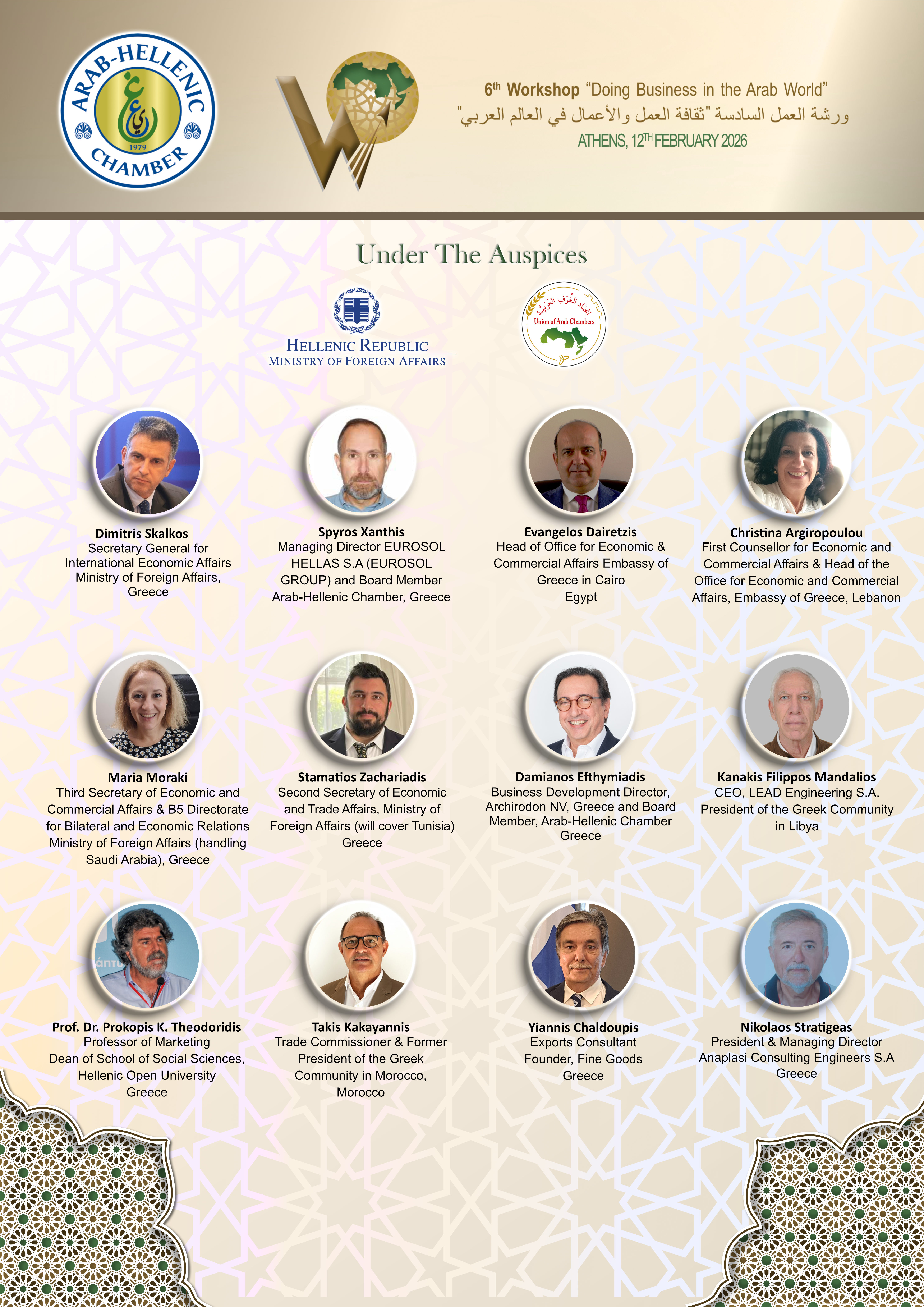 The day’s program will begin with the 7th Round Table Discussion “Meet the Arab Ambassadors”, during which the Ambassadors of Arab countries accredited to Greece will present the investment and business climate prevailing in their countries and the opportunities they offer to Greek entrepreneurs.